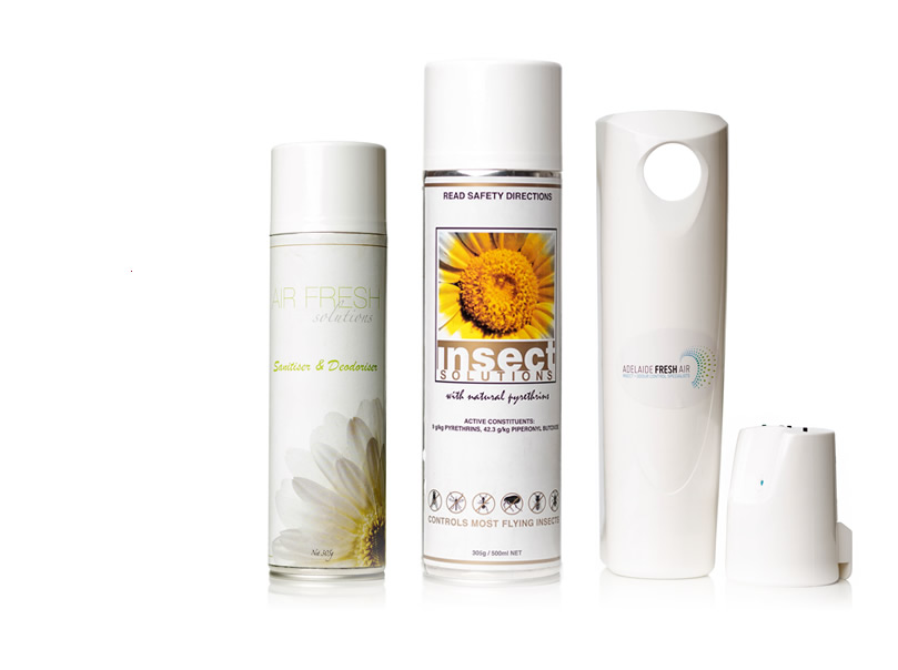 The products we use in our odour and insect control systems are some of the most sophisticated. We use high quality automatic aerosol dispensers which utilise the latest technology for both insect and odour control, meaning only small amounts of a naturally derived product are required for the desired results. Ideal for businesses in the food and medical industries, these products are safe for people as well as being environmentally friendly. With Adelaide Fresh Air, you get peace of mind that the solution to your business pest and odour problems won’t cause further issues.
